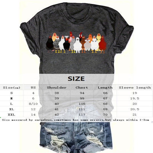 Women's Chicken Breeds Print Round Neck Tee - Fun Casual Summer Top